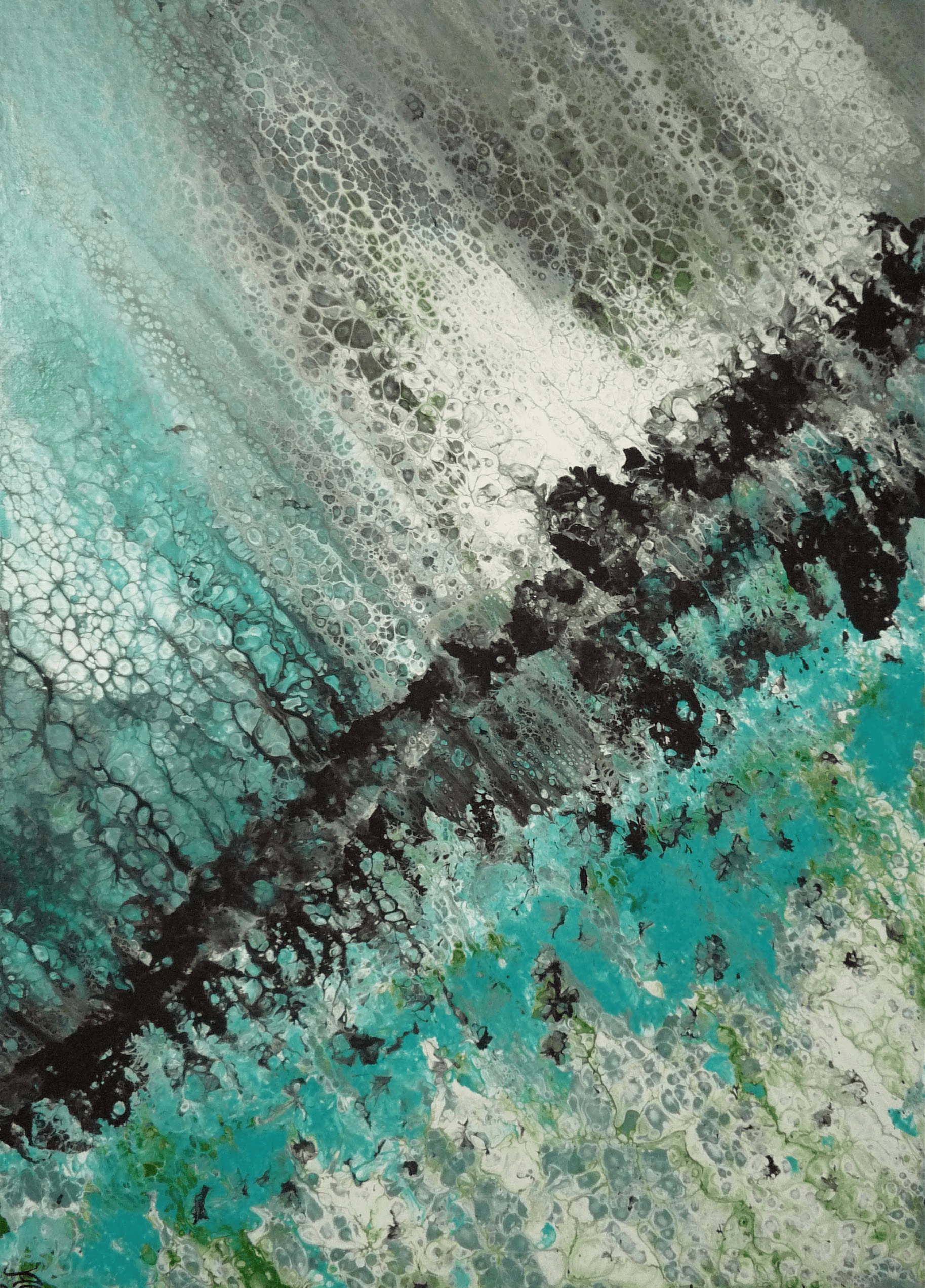 Beschreibung: Acryl auf Leinwand, türkis/grün gerahmt.