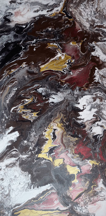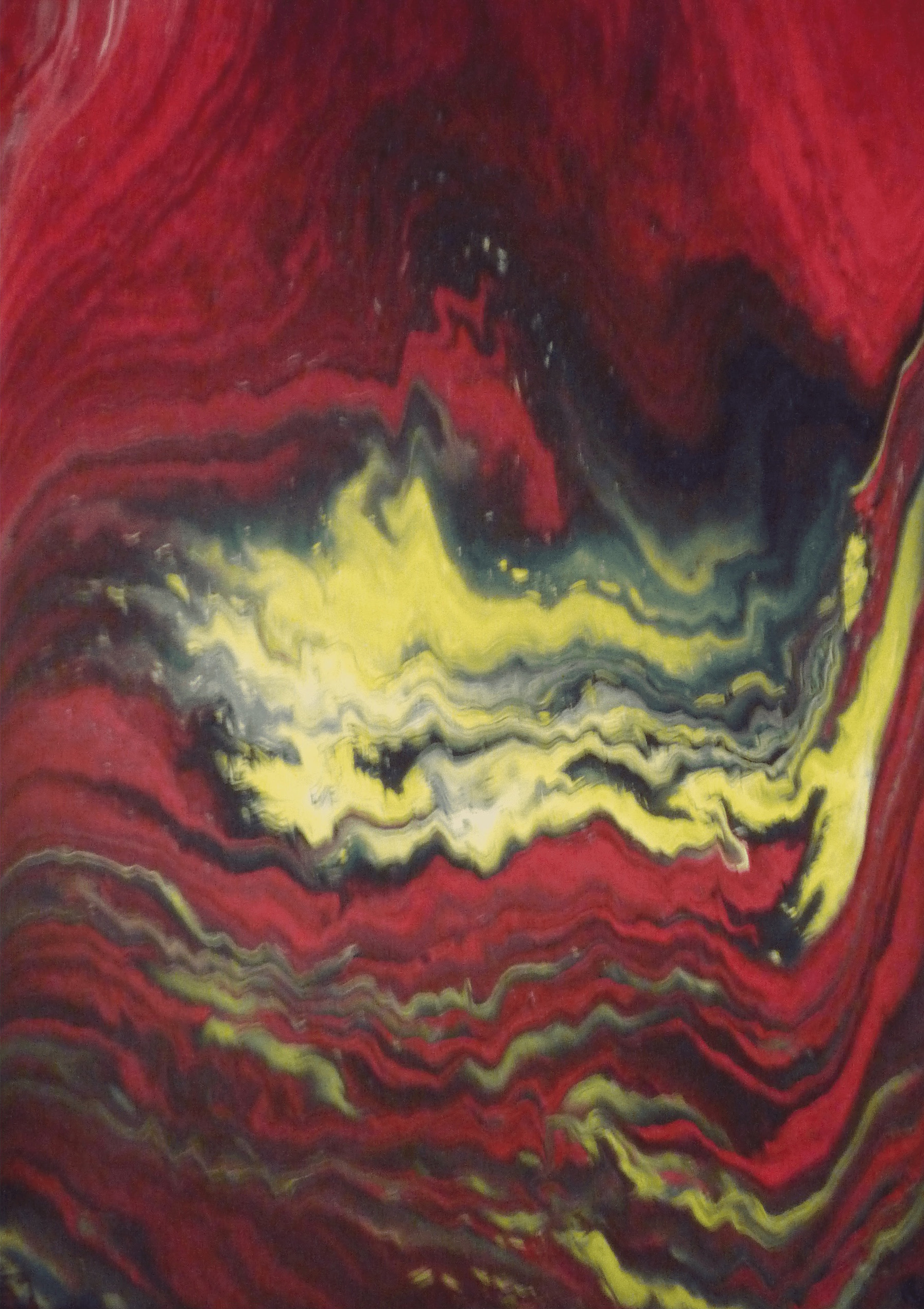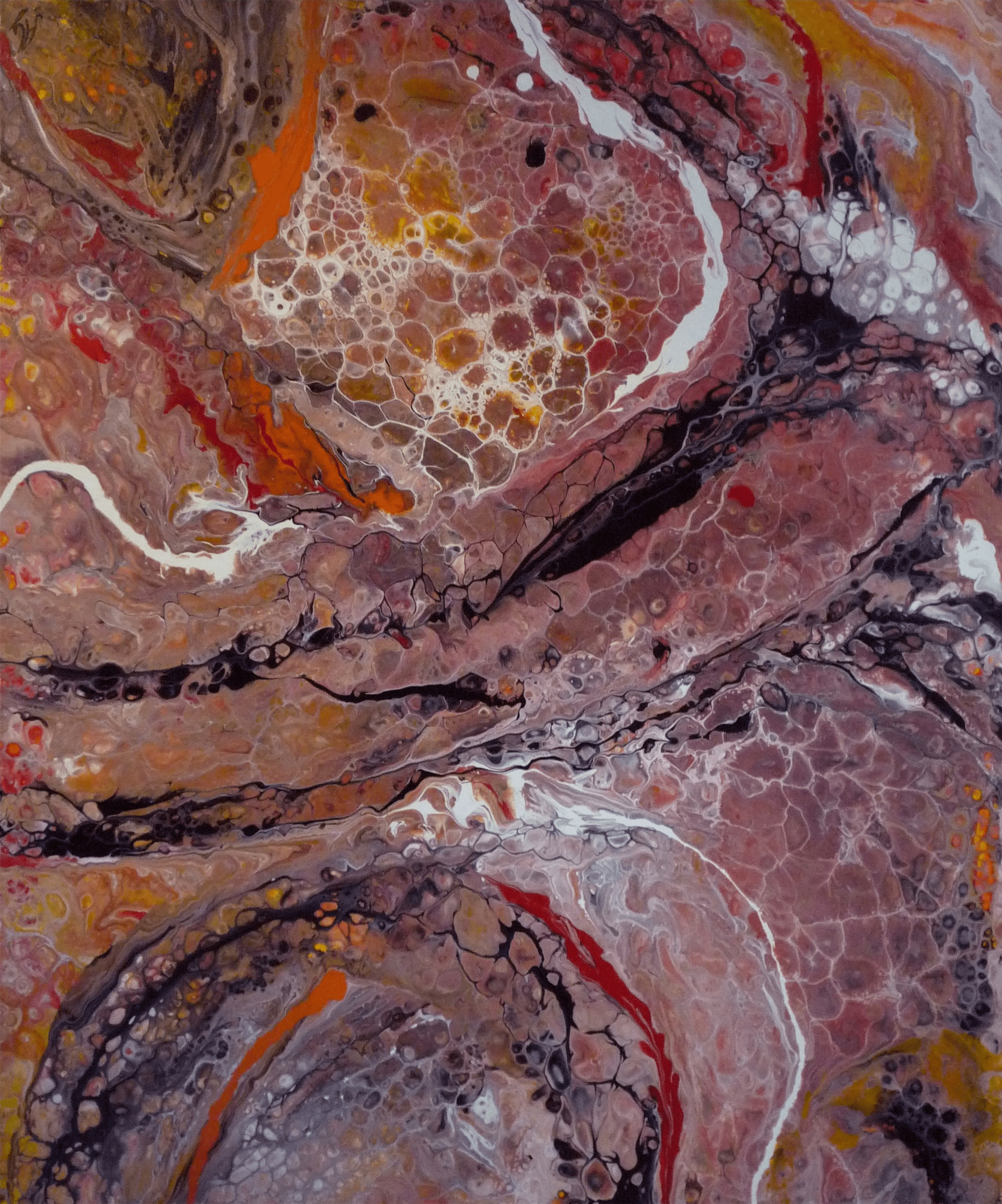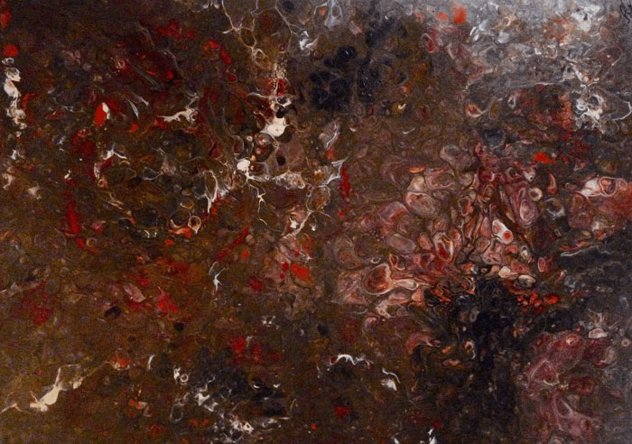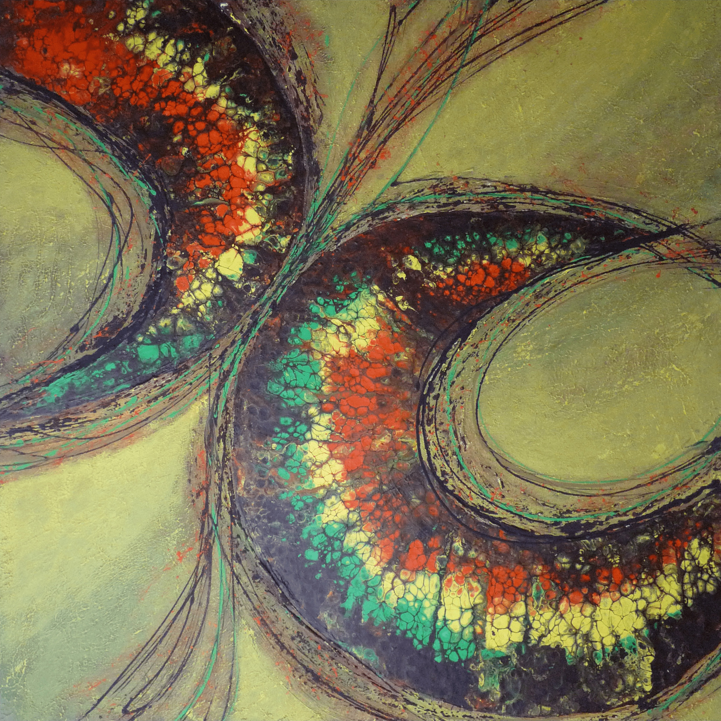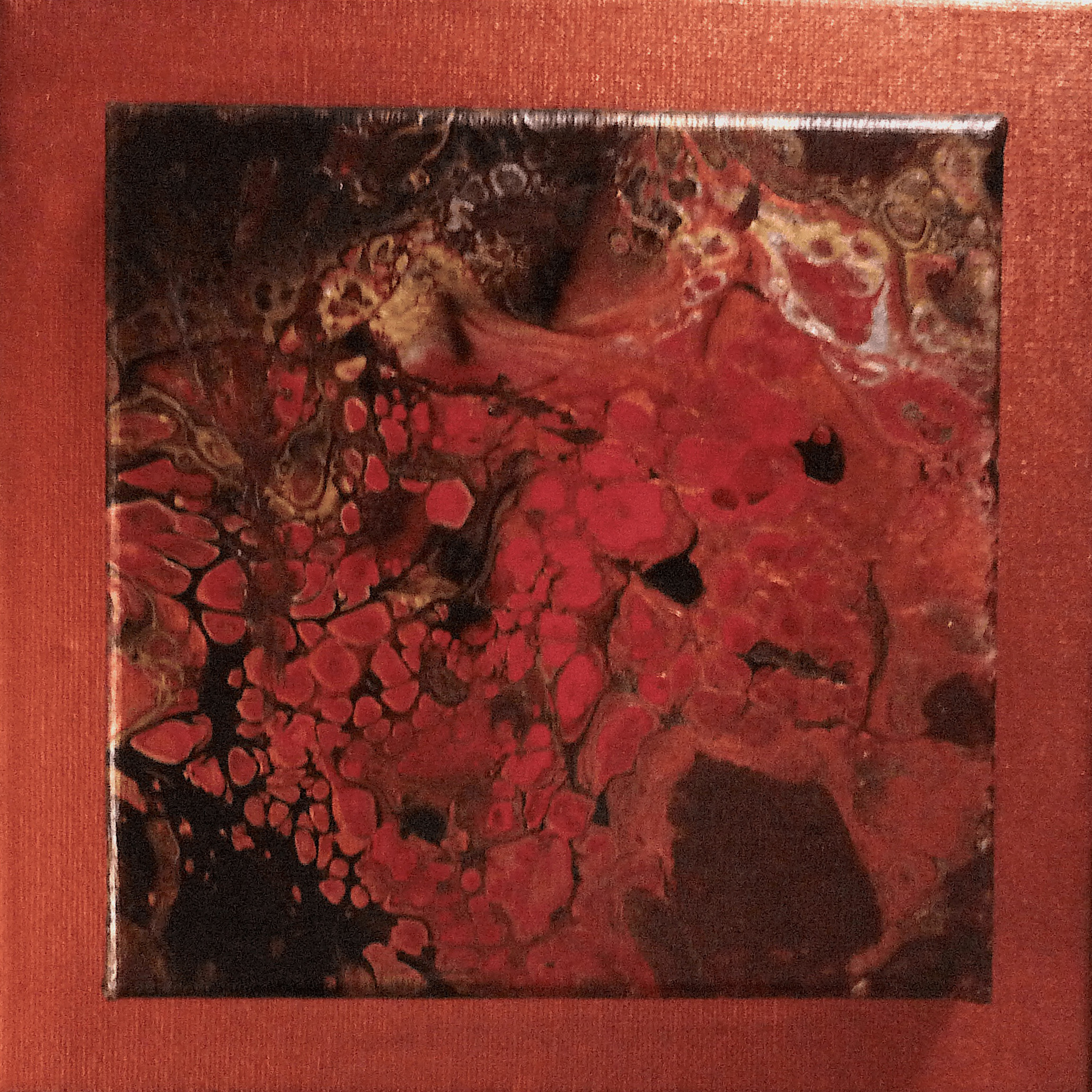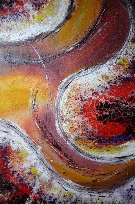 Beschreibung: Acryl auf Leinwand mit Struktur, rot gerahmt.
