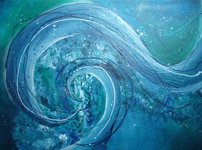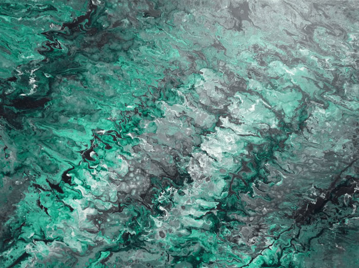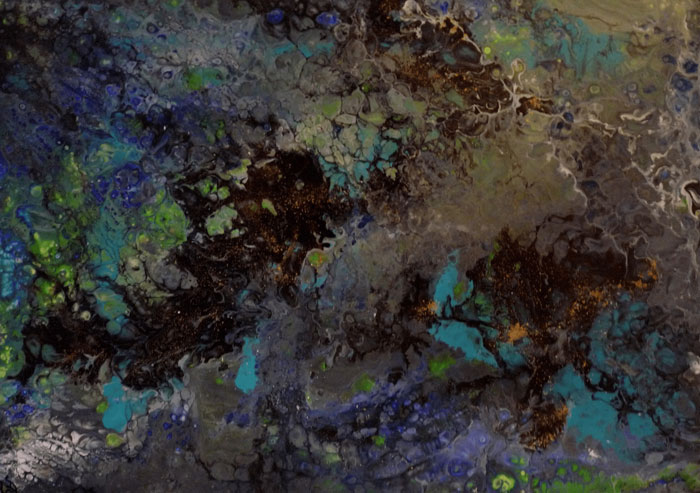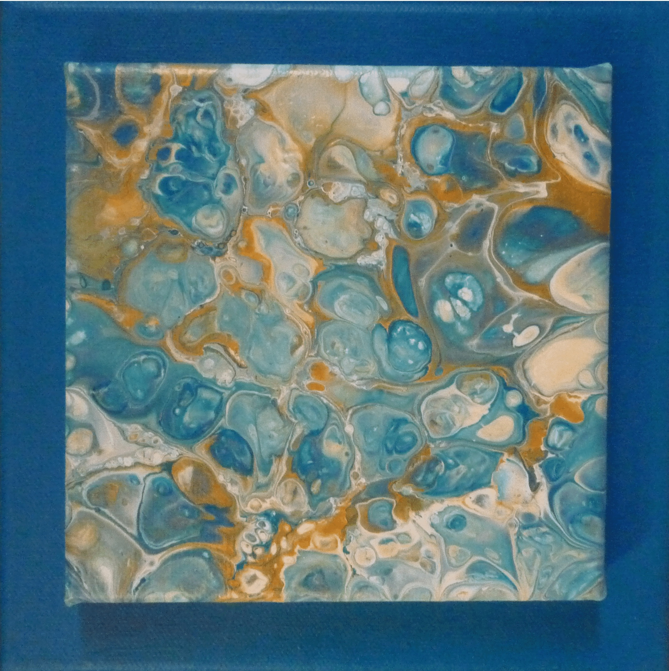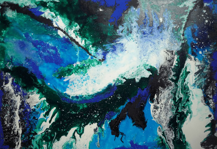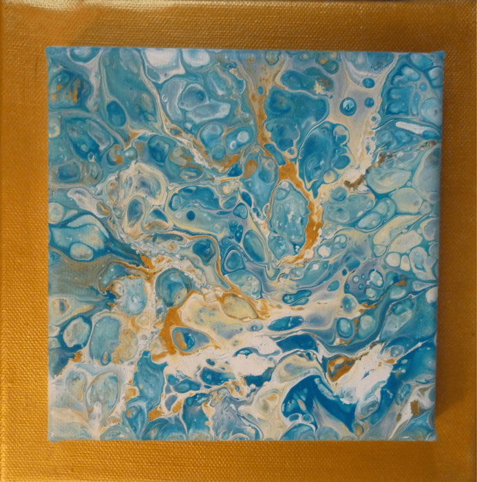 Beschreibung: Acrylfarben auf Leinwand, türkis gerahmt.