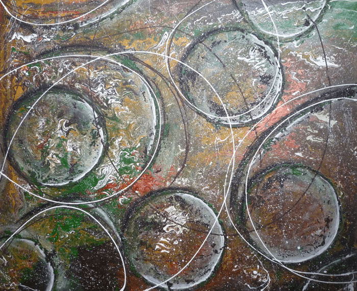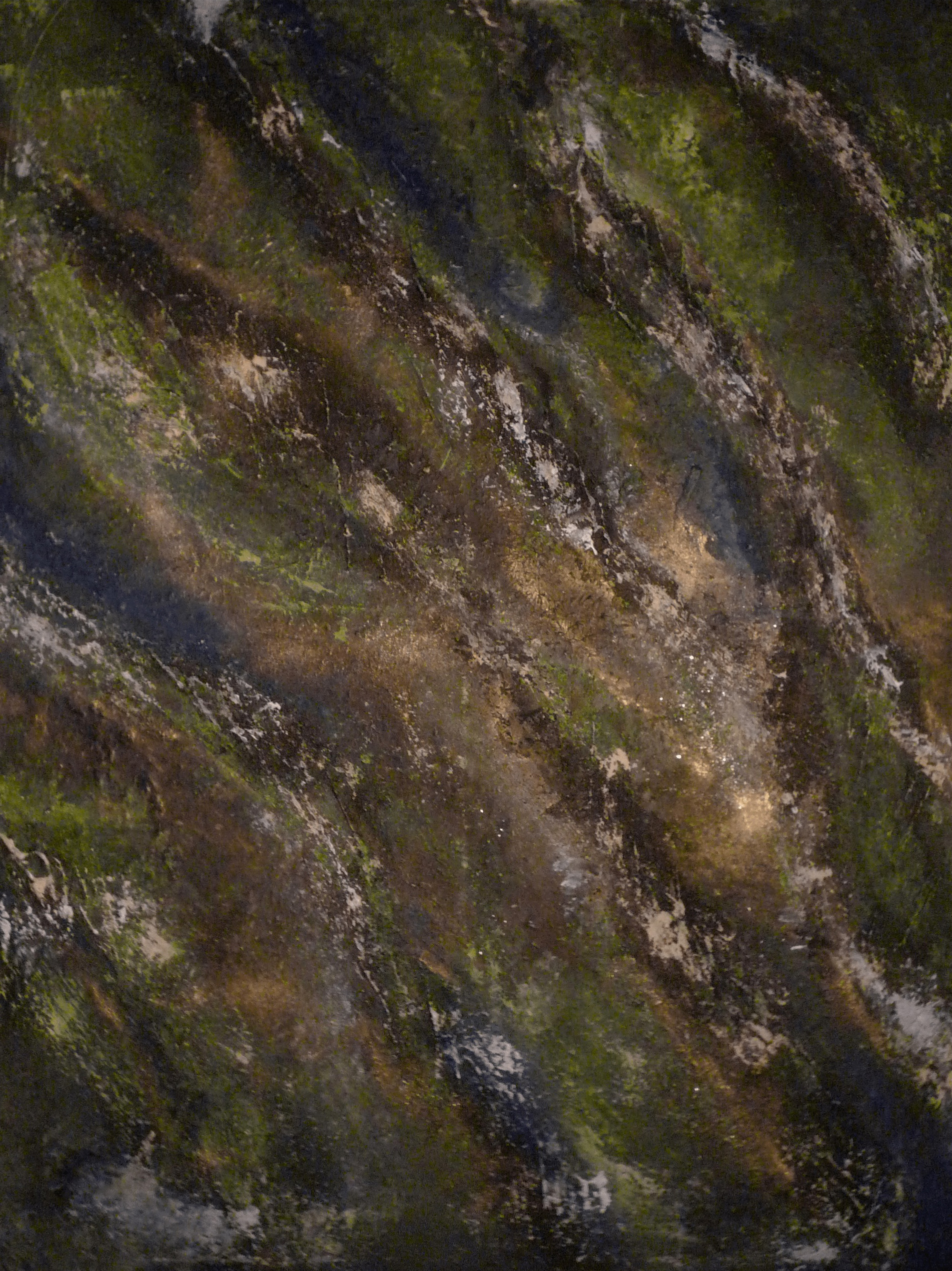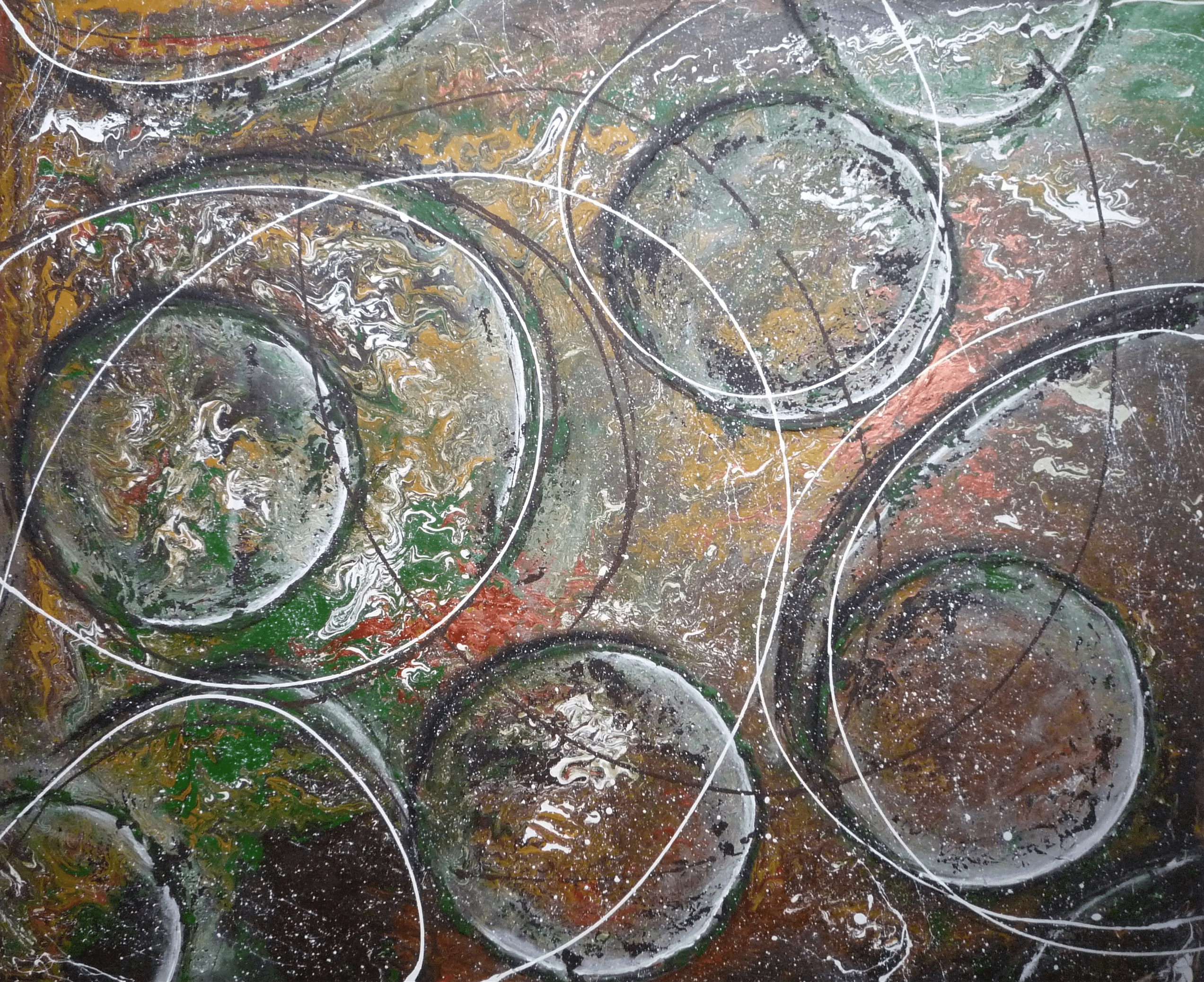 Beschreibung: Acryl auf Leinwand mit Struktur, dunkelgrün gerahmt.